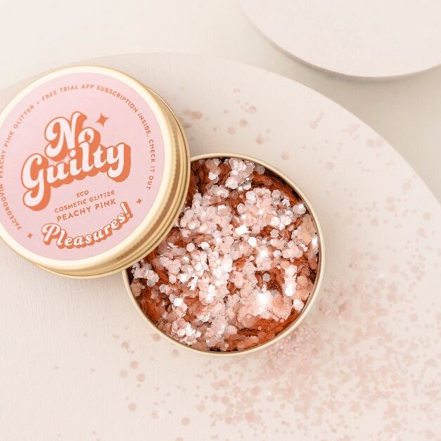 The glitter freckles are packaged in a gold aluminum tin.