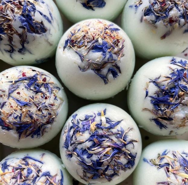Ingredients: Sodium Bicarbonate | Citric Acid | Theobroma Cacao Seed Butter | Zea Mays Starch | Prunus Amygdalus Dulcis Oil | Parfum | Butyrospermum Parkii Butter | Sodium Lauryl Sulfoacetate | Sodium Chloride | Centaurea Cyanus Flower | Fatty Alcohol Ethoxylate | Aqua | Denatonium Benzoate | Hexyl Cinnamal | Benzyl Salicylate | Limonene | Citronellol | Hydroxycitronellal | Linalool | CI 75815