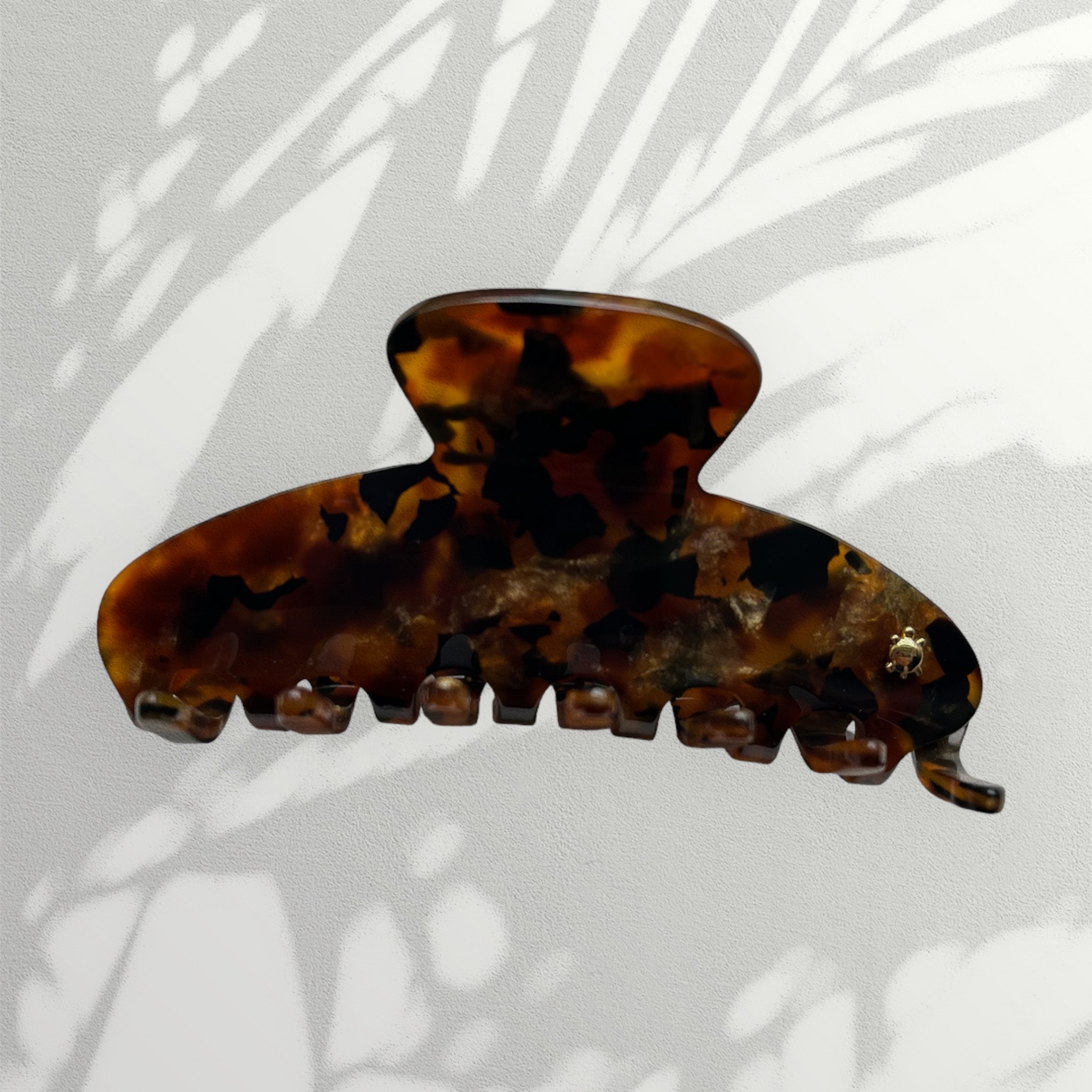 - Turtle Story Hair Jaw – Medium Size – Handmade from Italian Cellulose Acetate (“Tortoiseshell”) – Lava Stone.