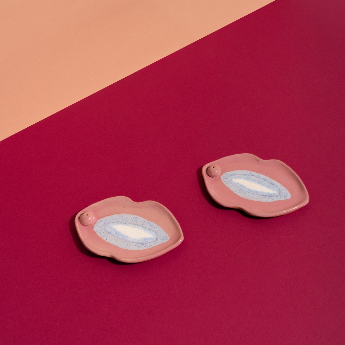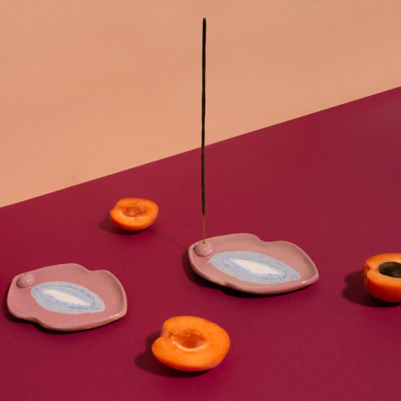 A ceramic tray in the shape of a female yoni or vulva in pink – blue colour and a shiny pearl centre. Use it as a burner to light your favourite incense, e.g. white sage or palo sticks. Where It All Begins is also great as a jewellery plate, soap dish or as a playful addition to your home space.